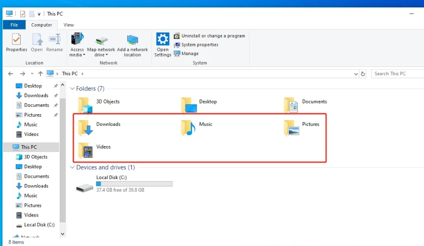 - Check your directories, like “Documents,” “Pictures,” and “Videos,” for duplicates or old files that you do not need anymore.