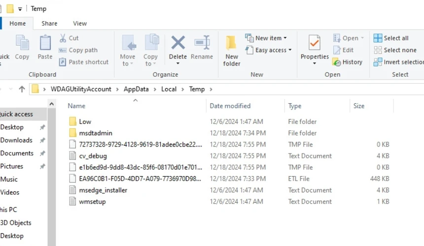 - Hold down the Ctrl and A keys while the Temp folder is open to select all the files inside it.