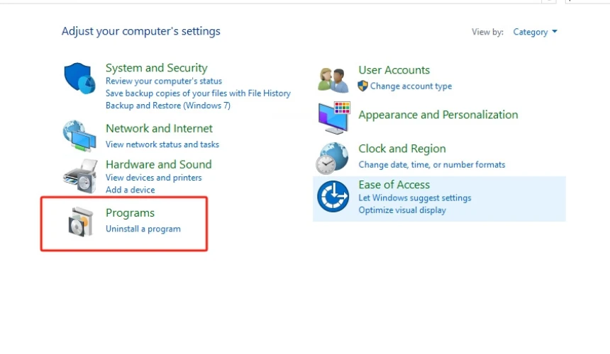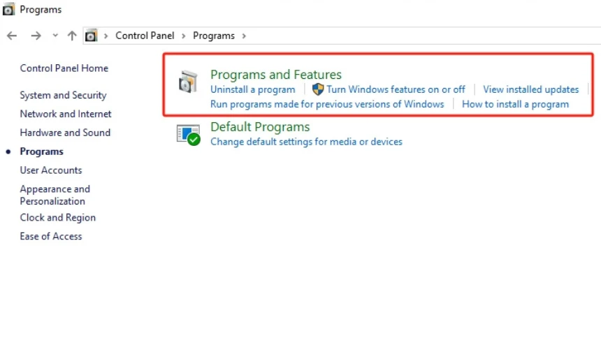 - Press “Programs” and then “Programs and Features” in the list of controls. This will bring up a list of all the programs on your computer.