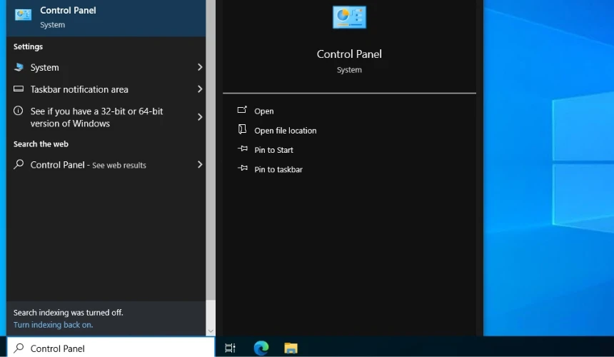 - Hit the Windows key and type “Control Panel” into the search box. When the Control Panel app shows up in the search results, click on it.