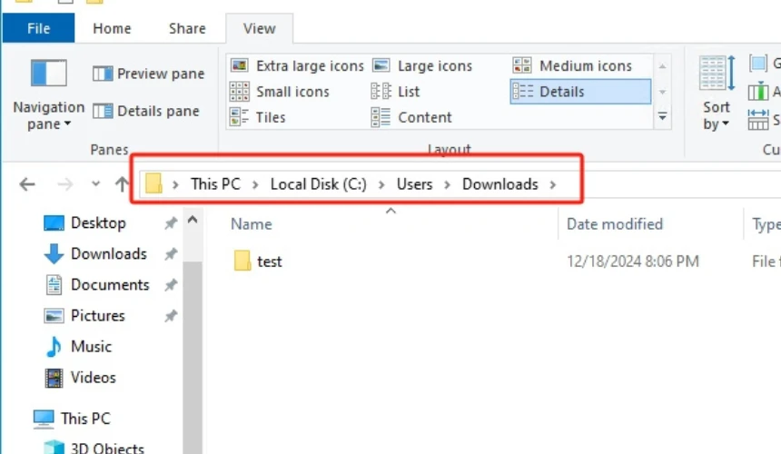 - To get to your “Downloads” folder, open File Explorer. Most of the time, this folder is in your user folder, like “C:\Users\YourUsername\Downloads.”