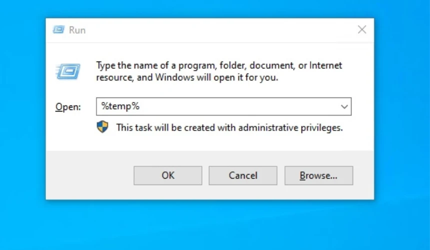 - In the Run box, type “%temp%” without the quotes and press Enter. When you do this, the Temp folder will open.