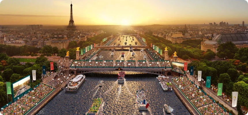 This is the first time in Olympic history that it has been organised as an open-air show. Over 8,000 athletes will glide down the river, accompanied by light shows, dancers, acrobats, and more. There will be 300,000 people, including 100 heads of state.
